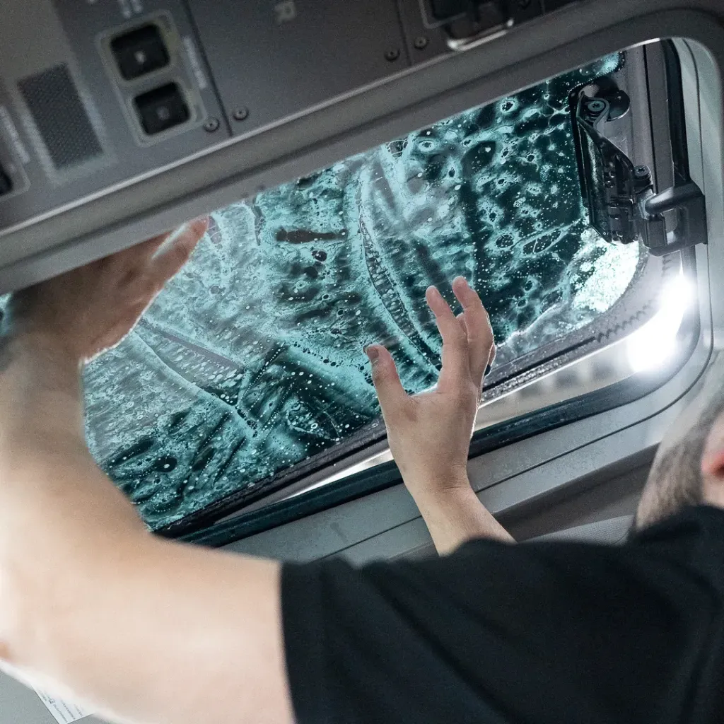 Specialized installation for full glass roofs and large rear glass.